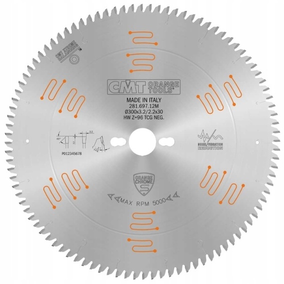 CMT Piła tarczowa CHROMOWANA HM do płyty wiórowej i MDF HM D=300 F=30 Z=96 K/P=3,2/2,2 FFT-3°NEG (CH)