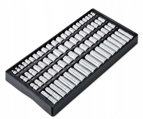 Kompleksowe wyposażenie – Wszechstronny zestaw zawierający klucze, nasadki i inne narzędzia w popularnych rozmiarach: 1/4", 3/8", 1/2", co czyni go idealnym do prac warsztatowych i domowych.
